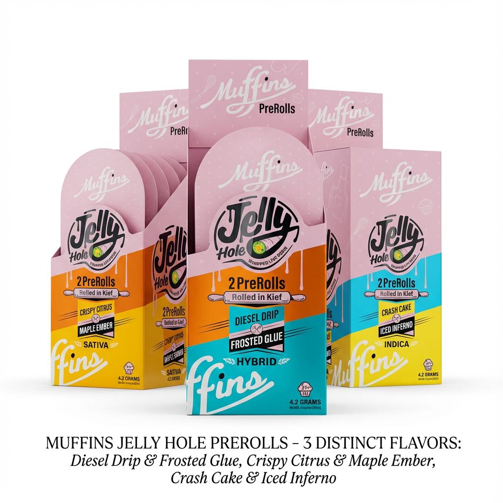 Muffins | THC-A Jelly Hole 4.2gm | 2 Pack Pre Rolls | 5 Count Box