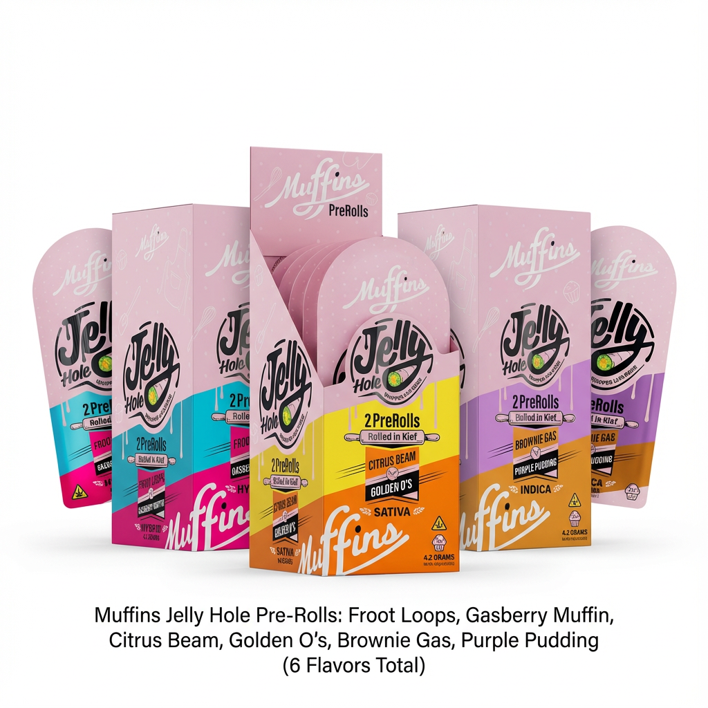 Muffins | THC-P Jelly Hole 4.2gm | 2 Pack Pre Rolls | 5 Count Box