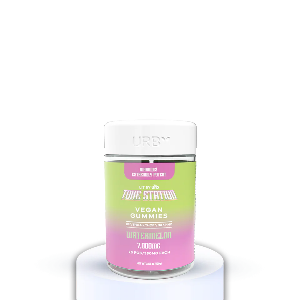 Urb x Toke Station Vegan Gummies | D9+THCA+THCP+D8+HHC | 7000mg | 20 Count Jar | WATERMELON